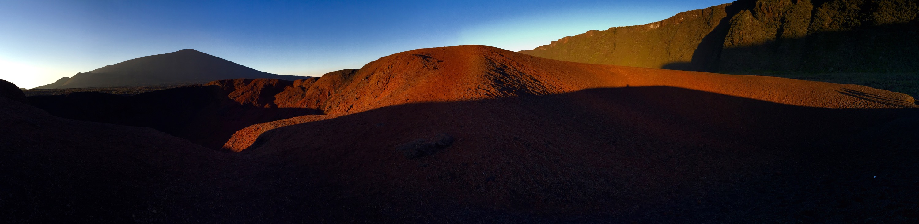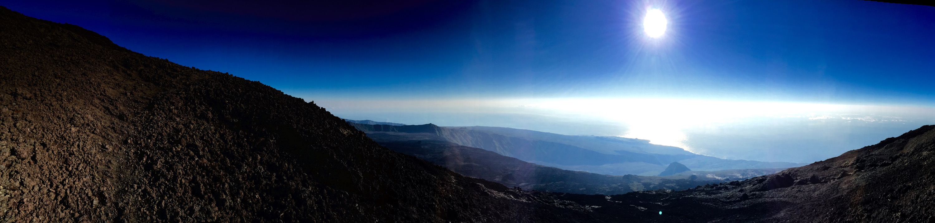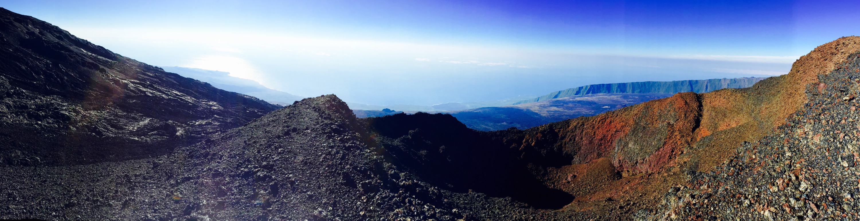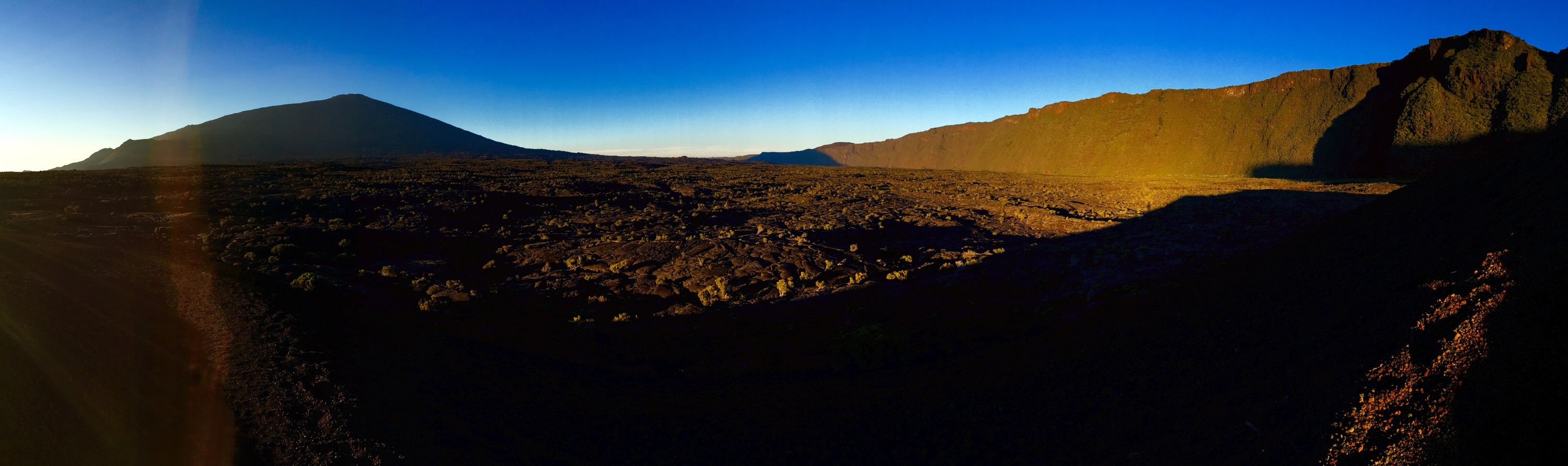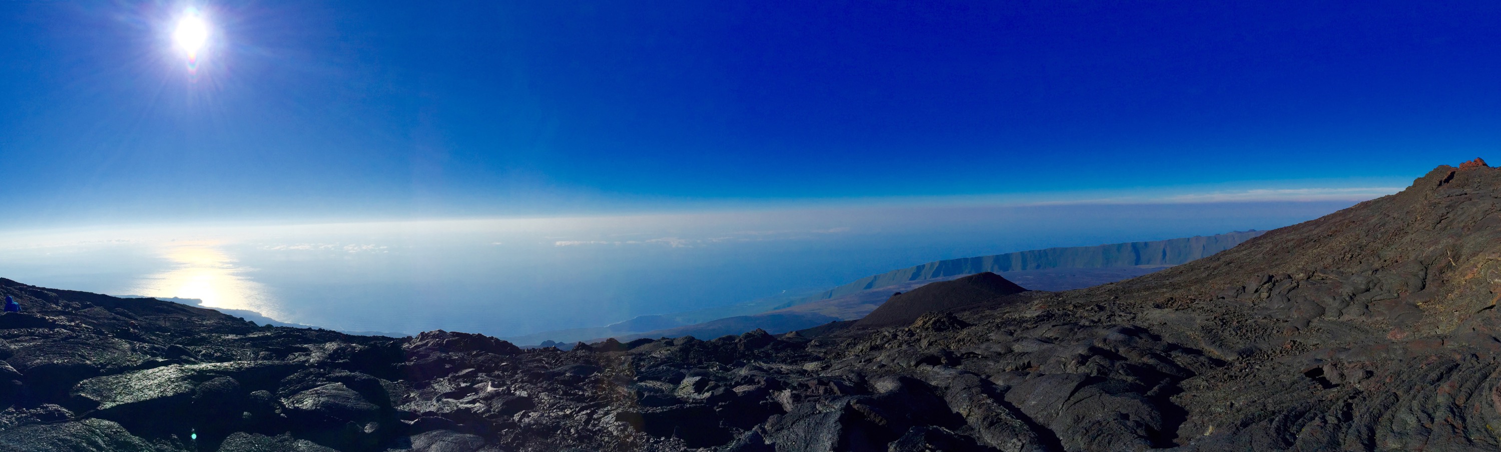 Aucun doute, c’était la meilleure journée pour monter au Piton. Le vent m’avait fait le plus grand cadeau qui soit; il n’y avait pas 1 seul nuage à l’horizon… phénomène très rare au Piton de la Fournaise.