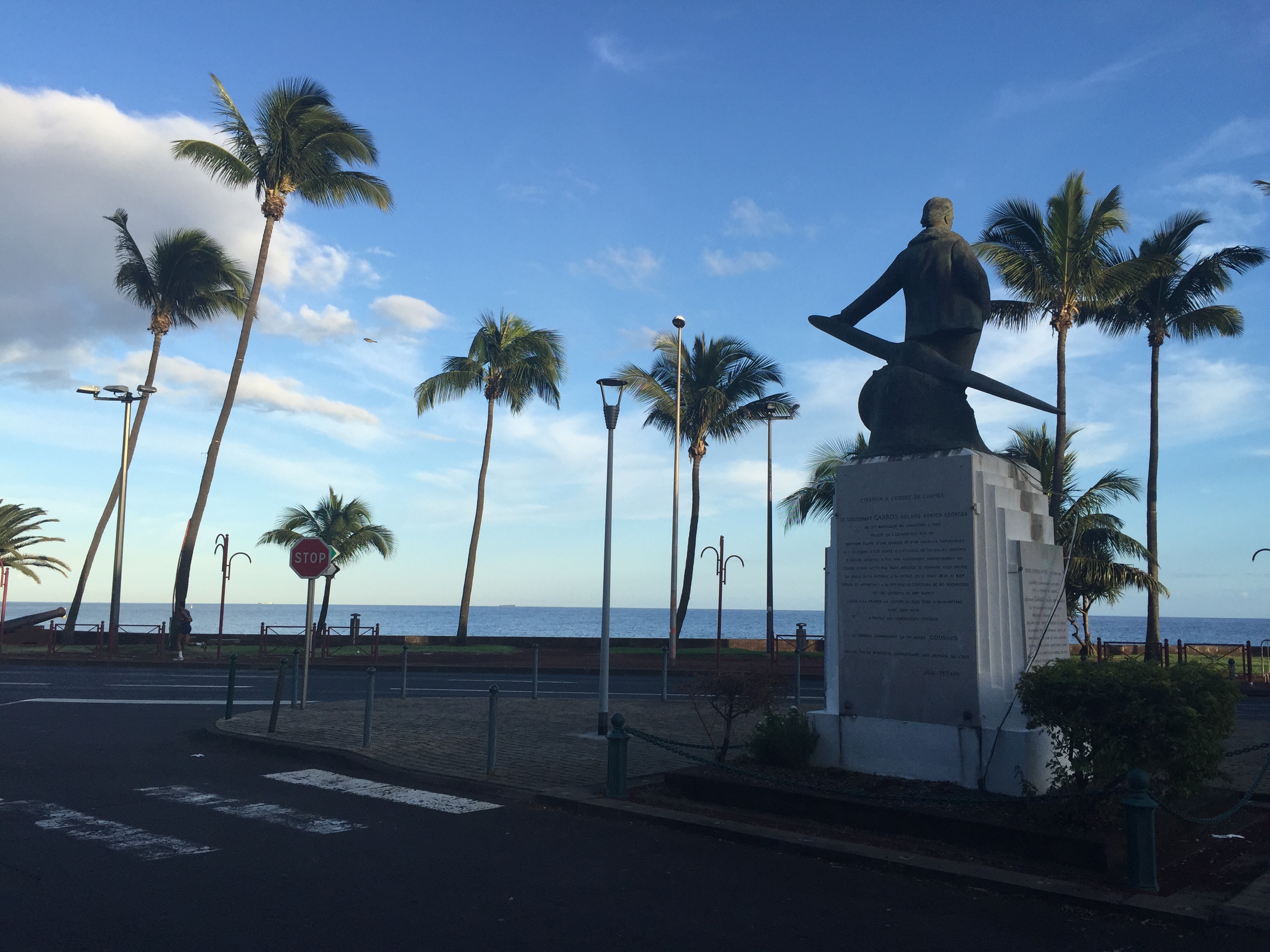 Par un matin déjà nuageux… je me lançais. Je ne pouvais pas être plus éloigné des montagnes en partant du niveau 0 mètre d’altitude juste à coté du Barachois, l’esplanade de bord de mer de St-Denis.