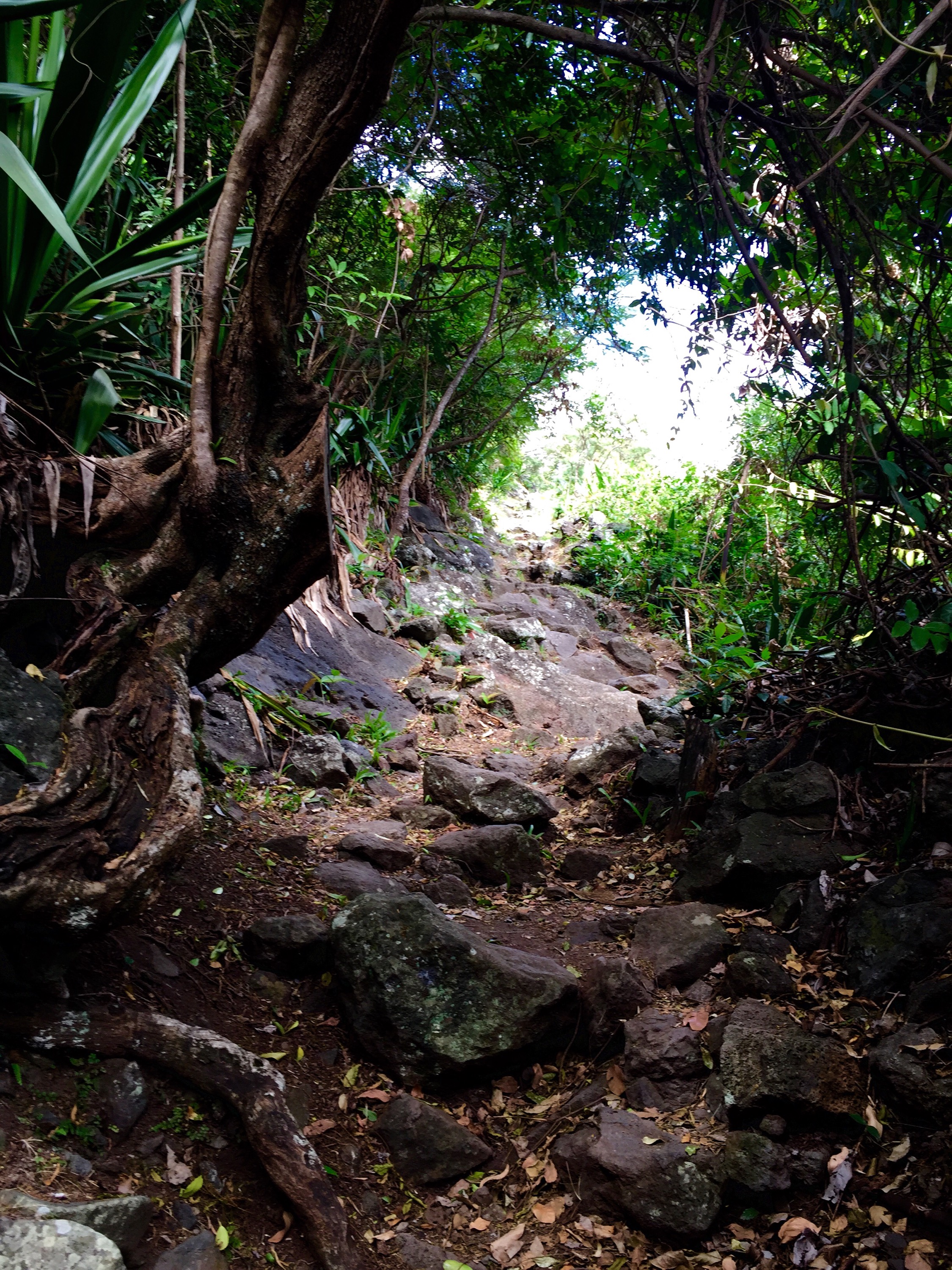 Tout au long de ce sentier, je me faisais dépasser par des petits vieux faisant leur exercice matinale. Si vous n’aviez pas encore compris, les gens sont très en forme à La Réunion et tout tourne autour de la randonnée. À ma décharge, ils n’avaient pas à porter une boule de quille.