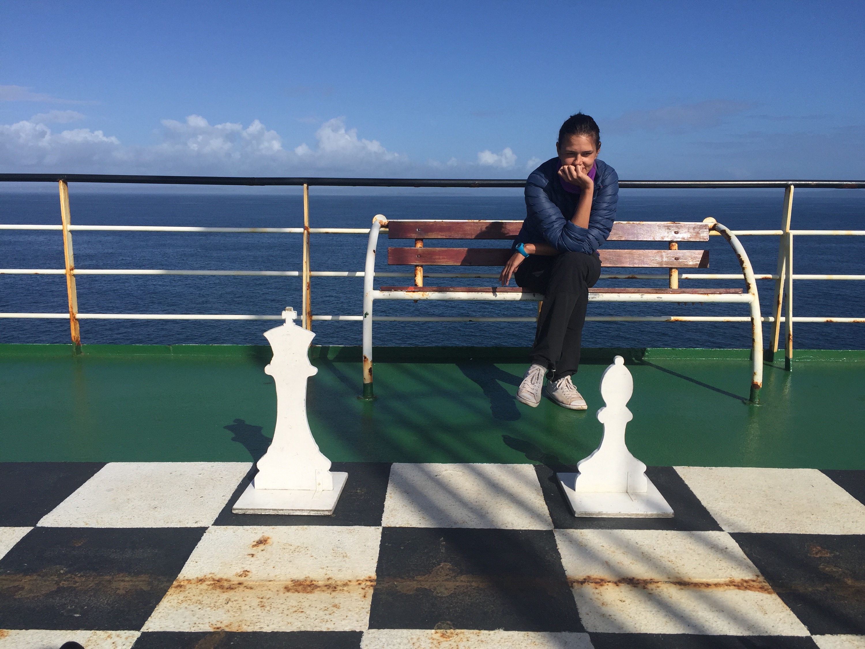 Nous étions à bord du traversier Evangelistas, un bateau construit dans les années 70. C’était comme faire une croisière… dans un foyer pour personnes agées. Sans plaisanter, l’intérieur du bateau avait l’air d’un foyer pour personnes âgées avec son look rétro démodé. Pour prouver mon point, on nous proposait des parties de Bingo le soir…