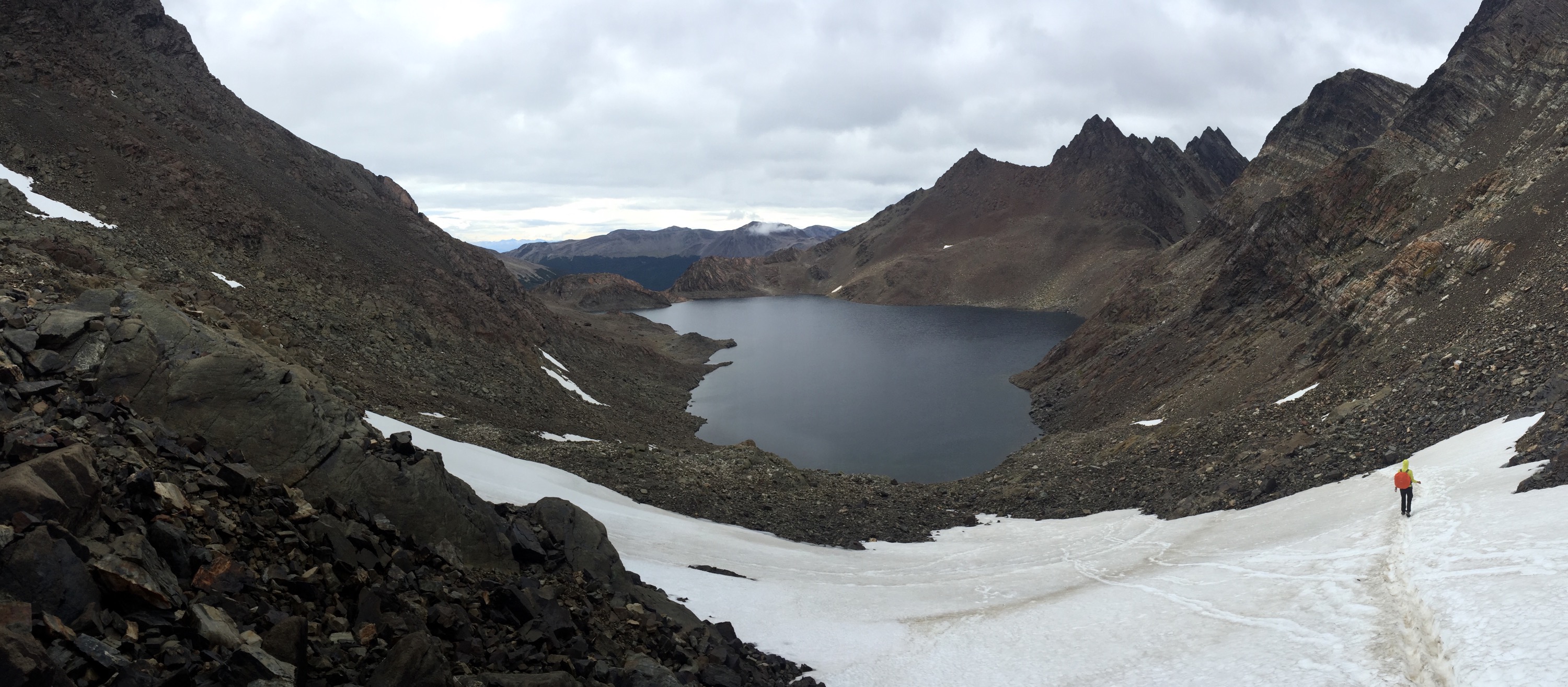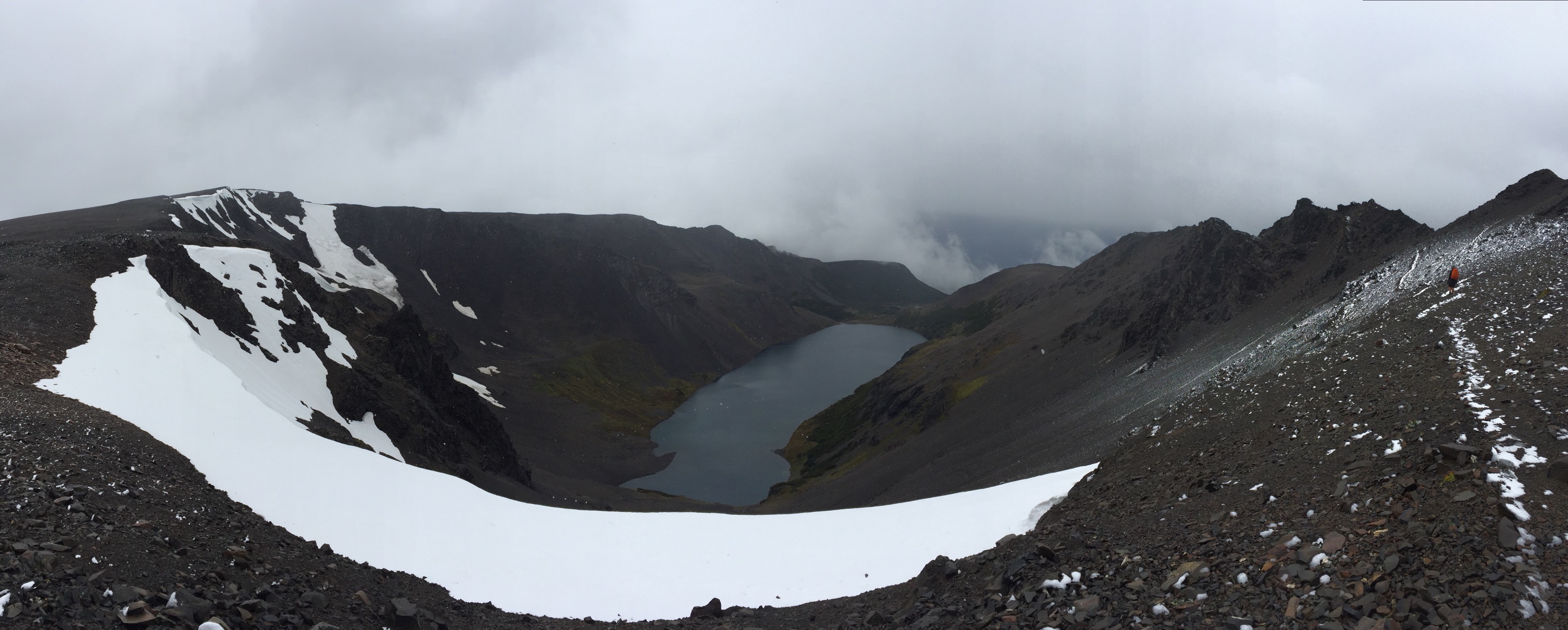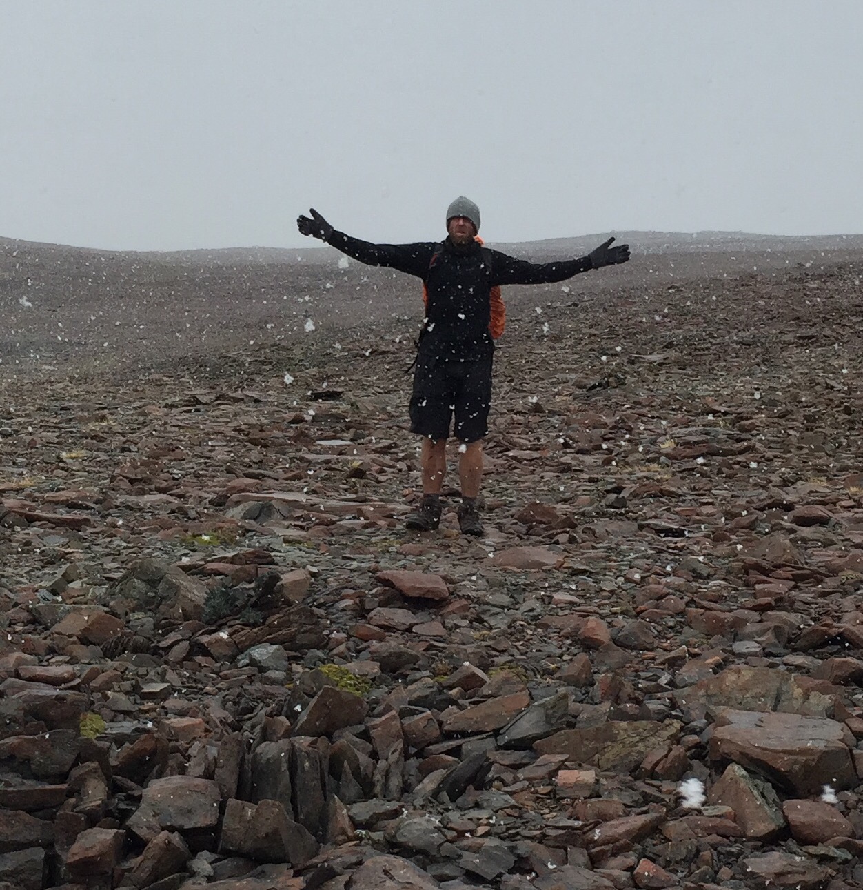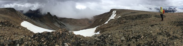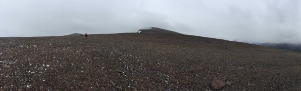 Dès lors, nous marchions pendant plus de 2km sur le sommet plat de la montagne. L’endroit n’était qu’un tas de gravas, mais la traversée était rendu difficile par une tempête de neige intense qui soufflait sur nous (oui… une tempête de neige). Ce fut probablement l’un des seuls moment dans ma vie où je n’ai pas apprécié la neige.