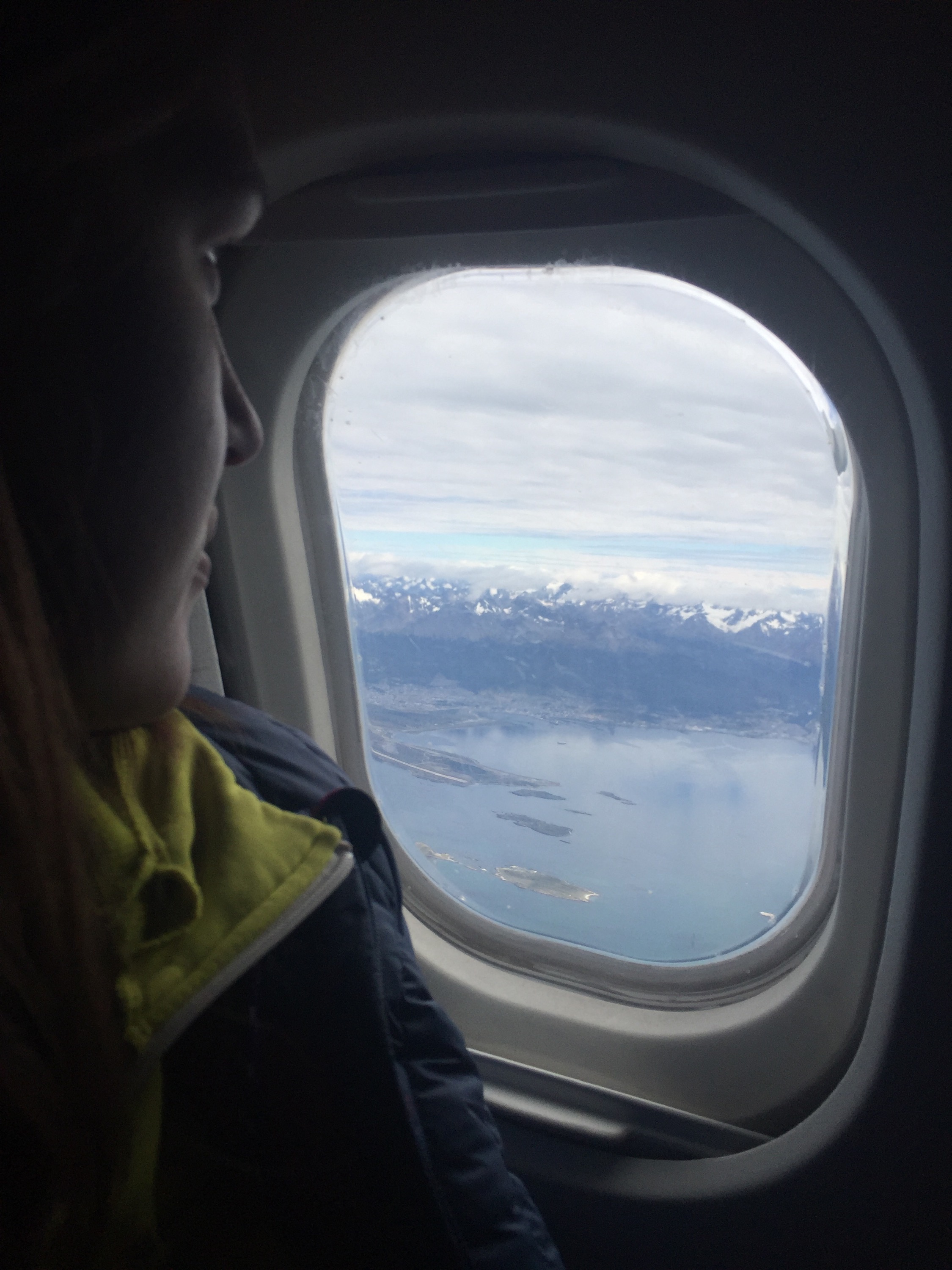 Ce sont les bottes encore détrempé, même après avoir passé 2 jours complet à sécher sur le bord d’un feu, que nous sautions dans l’avion pour retourner à Punta Arenas. Pour l’occasion, toutes les montagnes autour du Canal de Beagle avaient mise leur grand manteau blanc.