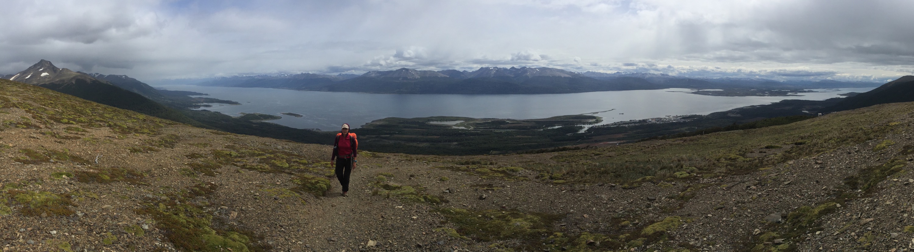 Premier objectif; le Cerro Bandera, le sommet d’une petite montagne derrière Puerto Williams, facilement reconnaissable de par son drapeau chilien. Le Cerro Bandera dominait le Canal du Beagle et Puerto Williams du haut de ses 610m. Nous pouvions même apercevoir Ushuaia tout au loin à l’ouest.