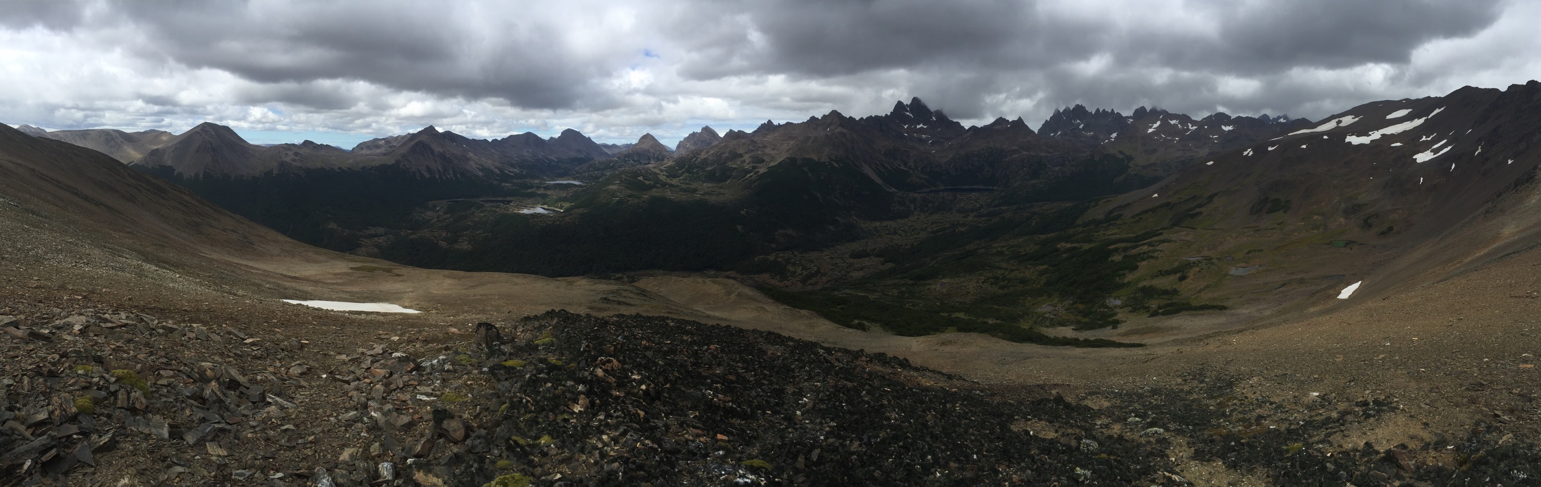 Nous disions Au Revoir à Puerto Williams et au Canal de Beagle pour basculer dans la Valle Robalo, ceinturée par des montagnes sur 3 cotés et avec 3 lagunas (lacs) en contrebas.