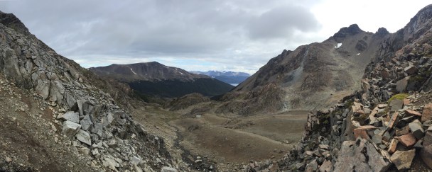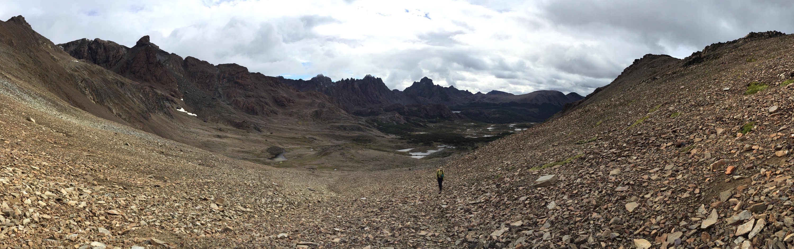 Nous marchions au travers de champs d’éboulement, à chercher les rares totems, jusqu’au sommet de la Paso Ventarron. Du haut de ses 680m, nous disions Au Revoir aux paysages des 2 derniers jours pour basculer dans une nouvelle vallée.