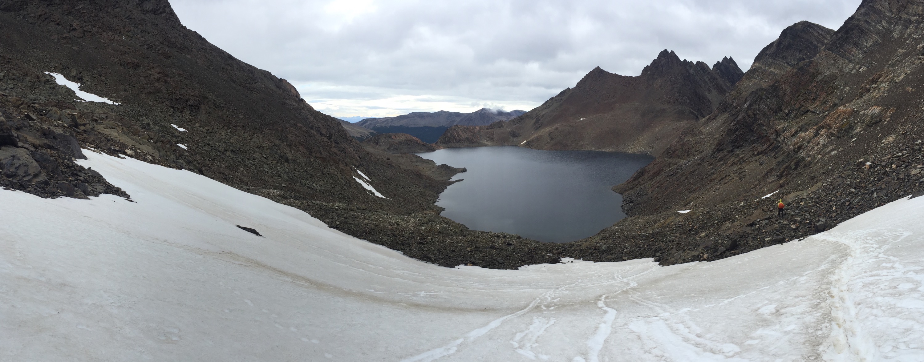 La pluie nous attrapait sur le final, juste avant d’arriver au Laguna del Salta, faisant sur que la dernière section (toute en descente dans un champ d’éboulement sur 200m de haut) soit bien glissante et que notre site de camping soit détrempé.