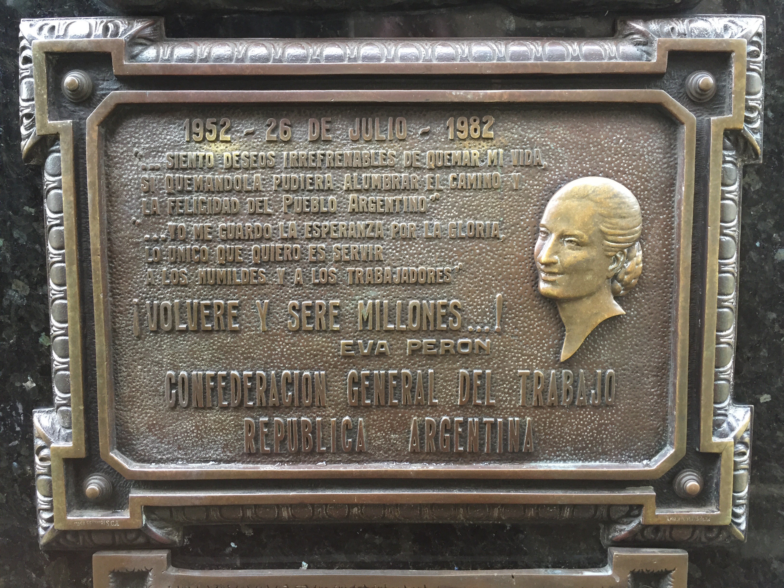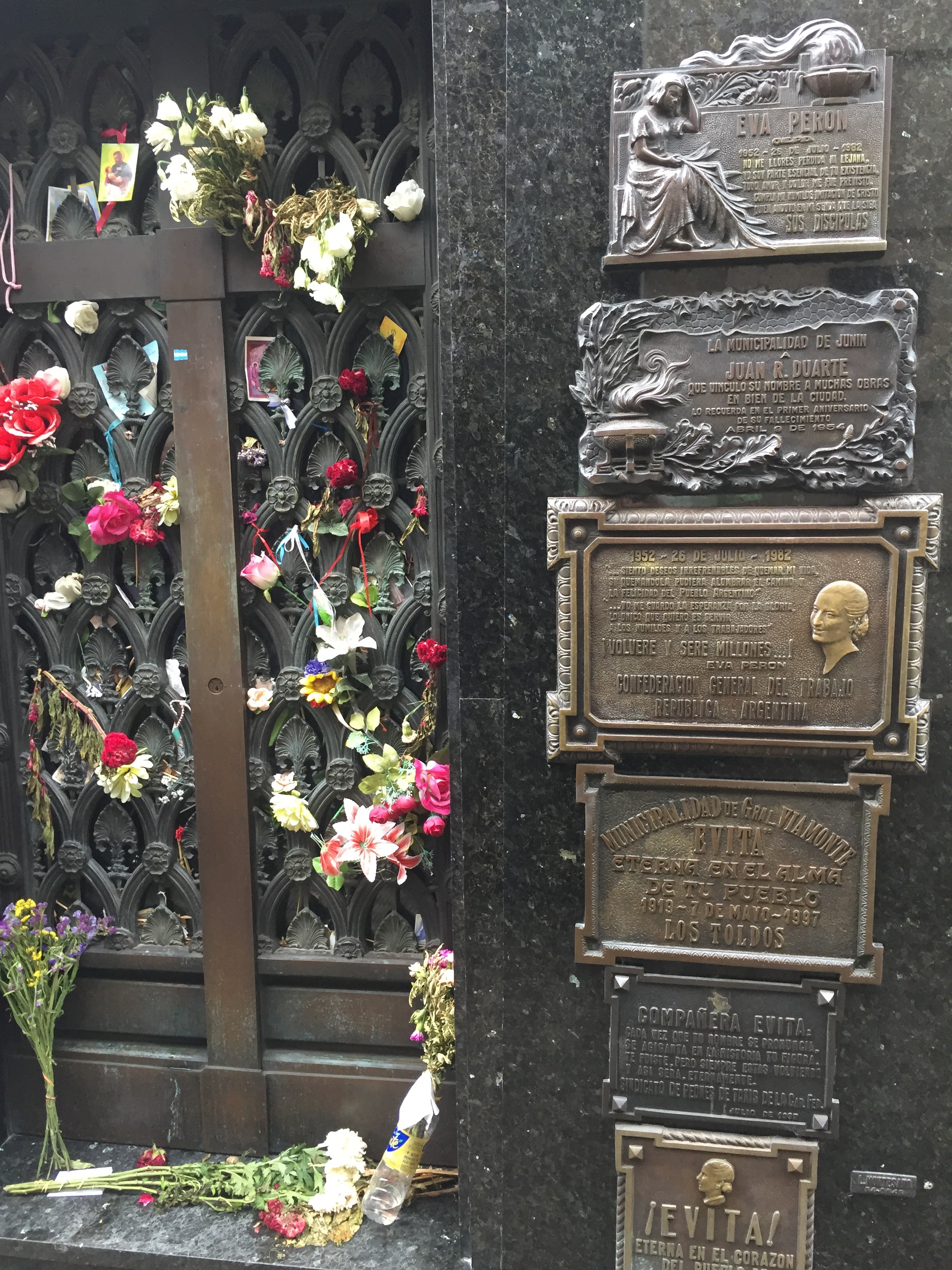 La « résidente » la plus célèbre du cimetière est sans aucun doute Eva Peron. Sa tombe est vénérée comme l’est celle du chanteur Jim Morrison au Cimetière du Père Lachaise à Paris.