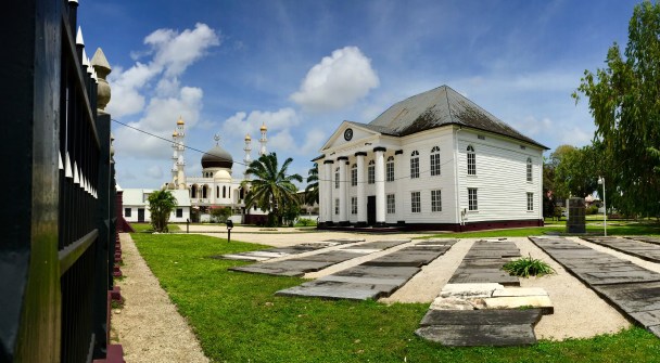 L’un des plus petits pays sur Terre pourrait faire la morale au plus grand. En moins d’une heure de marche dans Paramaribo, vous tombez sur l’une des plus grande synagogue du continent, un immense temple hindou, la plus importante mosque du continent, et l’une des plus haute église en bois au monde. Nous avons aussi croisé un temple chinois (taoisme).