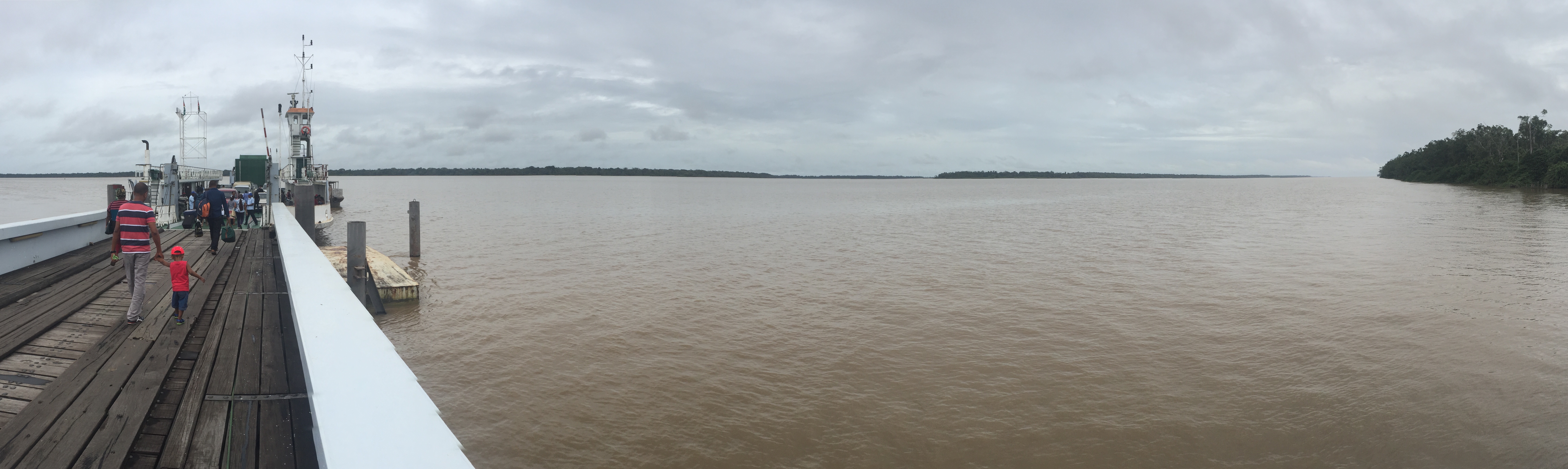 150km plus loin, nous franchissions la rivière suriname par le Wijdenboschbrug, un pont en béton qui montait tellement haut qu’on aurait dit une montagne russe. Au sommet du pont, Tanzi me demandait pourquoi j’étais nerveux; well, j’ai confiance aux ingénieurs européen/nord-américain, mais les ingénieurs surinamais?!?