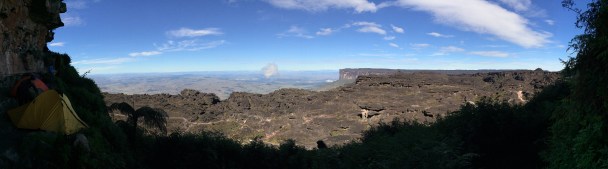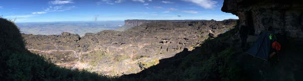 Le camp d’aujourd’hui se trouvait sur un plateau, au sommet du monticule de verdure, tout près du début de la paroi rocheuse. L’endroit offrait une vue imprenable sur la Gran Sabana en contrebas.