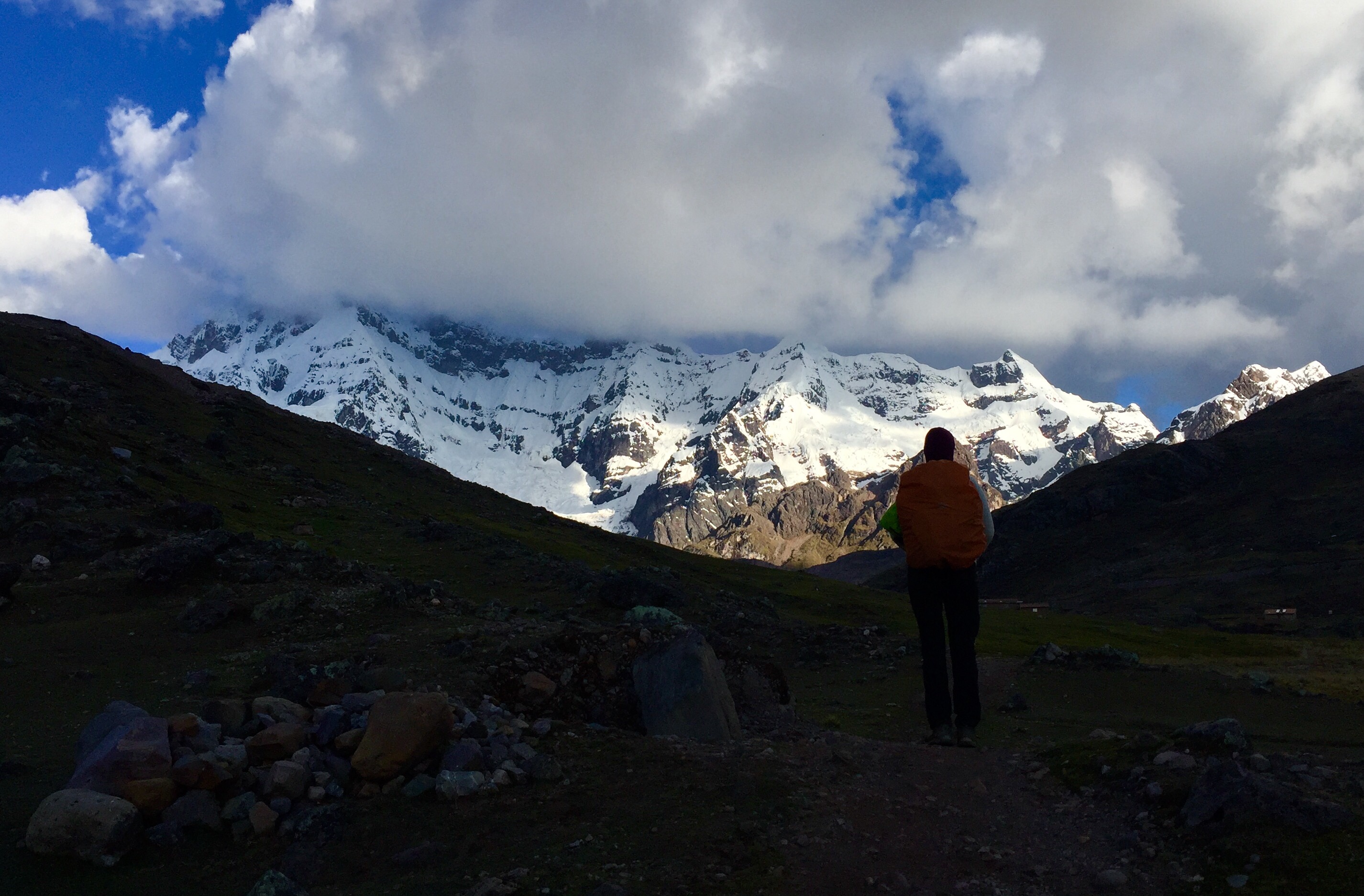Une fois sur les berges du Lago Hatun Pucacocha, le plus grand de ces lacs, Ausangate se dévoilait complètement. Nous pouvions admirer le coeur de ce géant des Andes; un gigantesque glacier suspendu aux parois rocheuses depuis des millénaires.