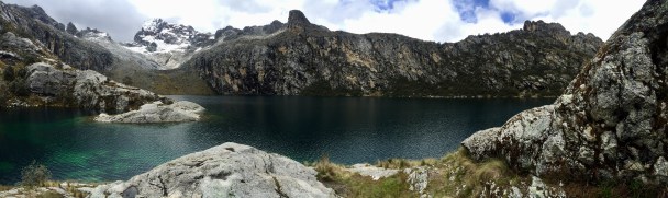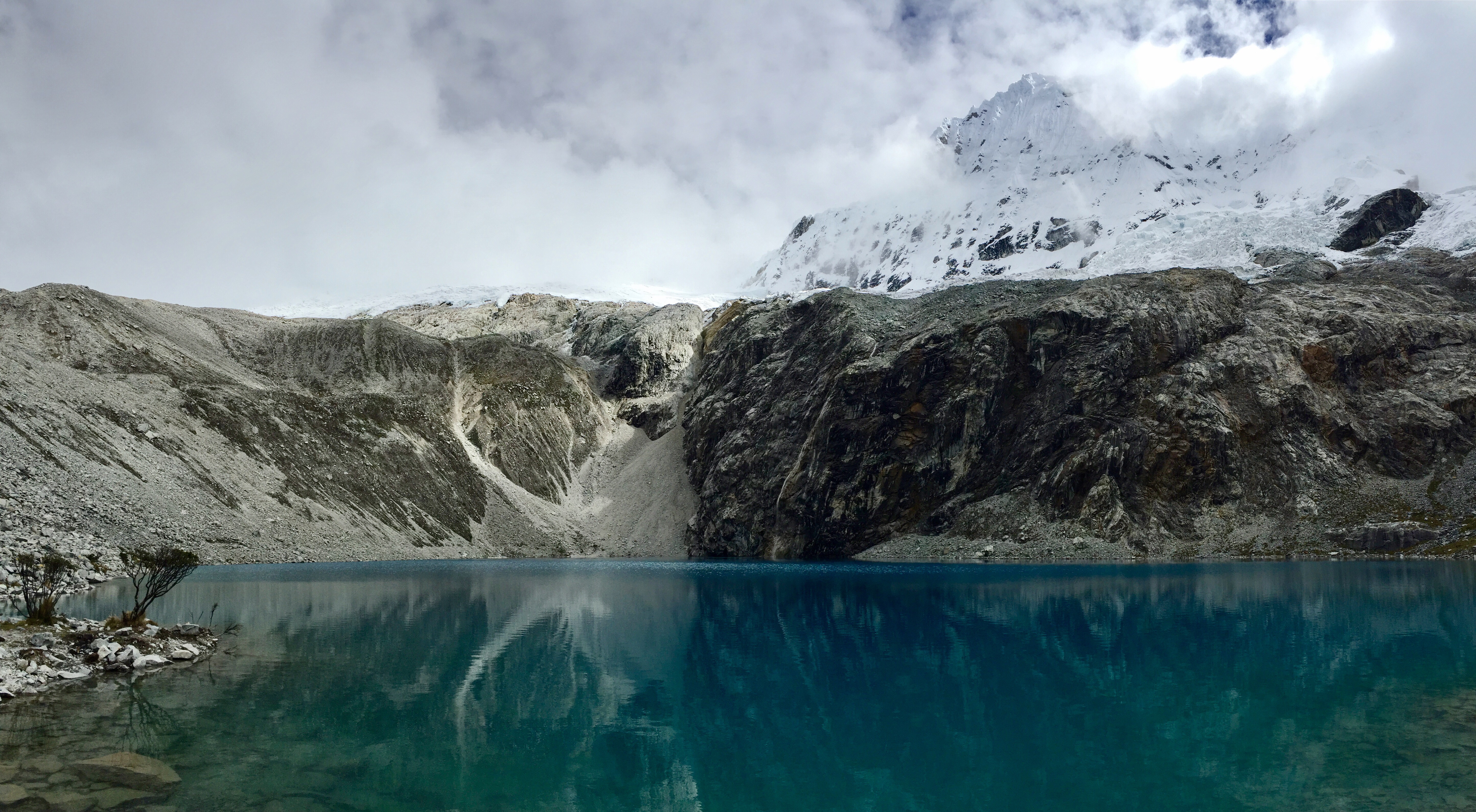 Situé à 4450m, au pied du Nevado Churup (5495m), il faut tout d’abord prendre un bus depuis Huaraz, se faire brasser sur une route durant 18km jusqu’au village de Pisac, et faire une courte (mais intense) ascension (3km +650m allé).