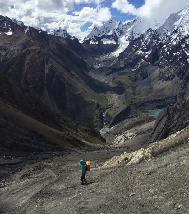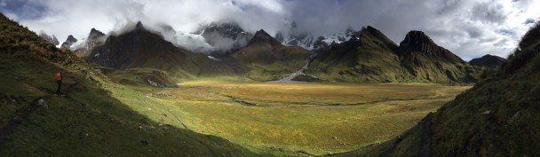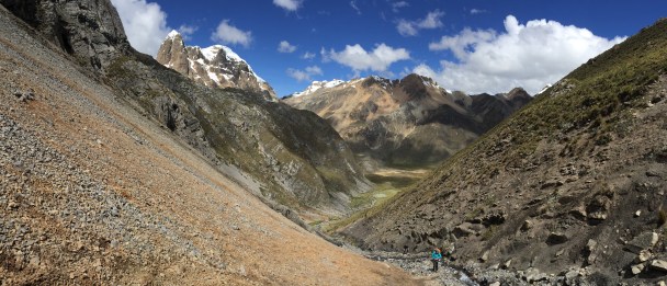 De 5100m où nous étions au sommet de la Paso, il fallait désormais descendre jusqu’au fond de la vallée à Huynaypatay (@4500m).