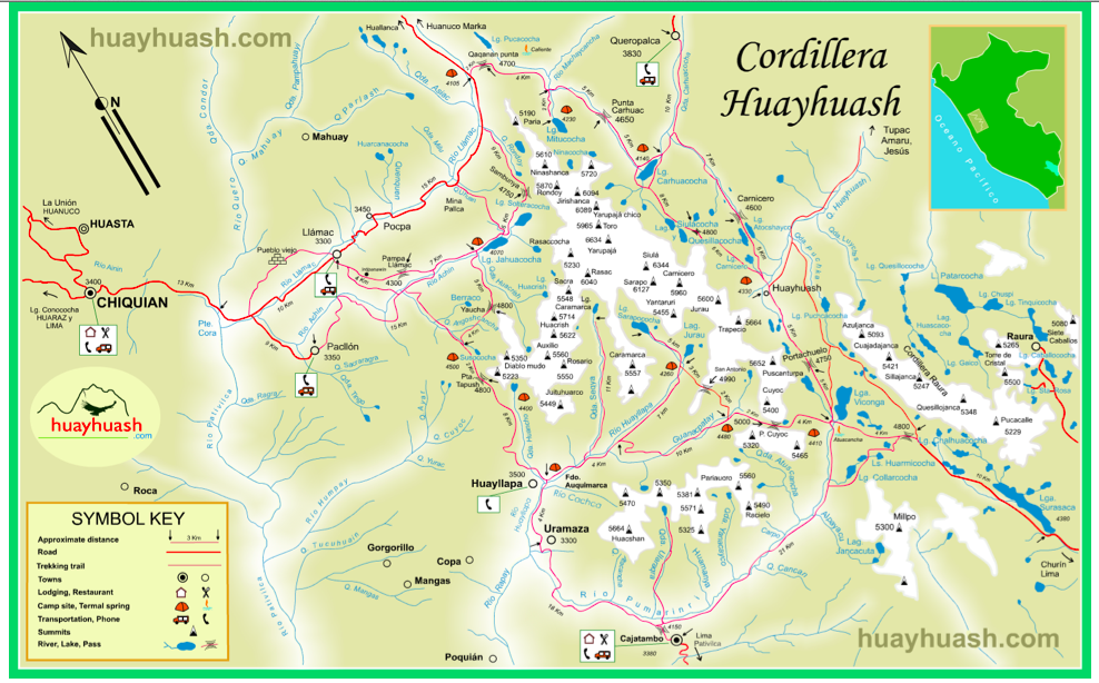 D’une longueur d’environ 120km, avec 8 Cols à plus de 4600m, dont 2 supérieurs à 5000m, le Circuit Huayhuash est classé « Difficile » dans le monde de la randonnée.