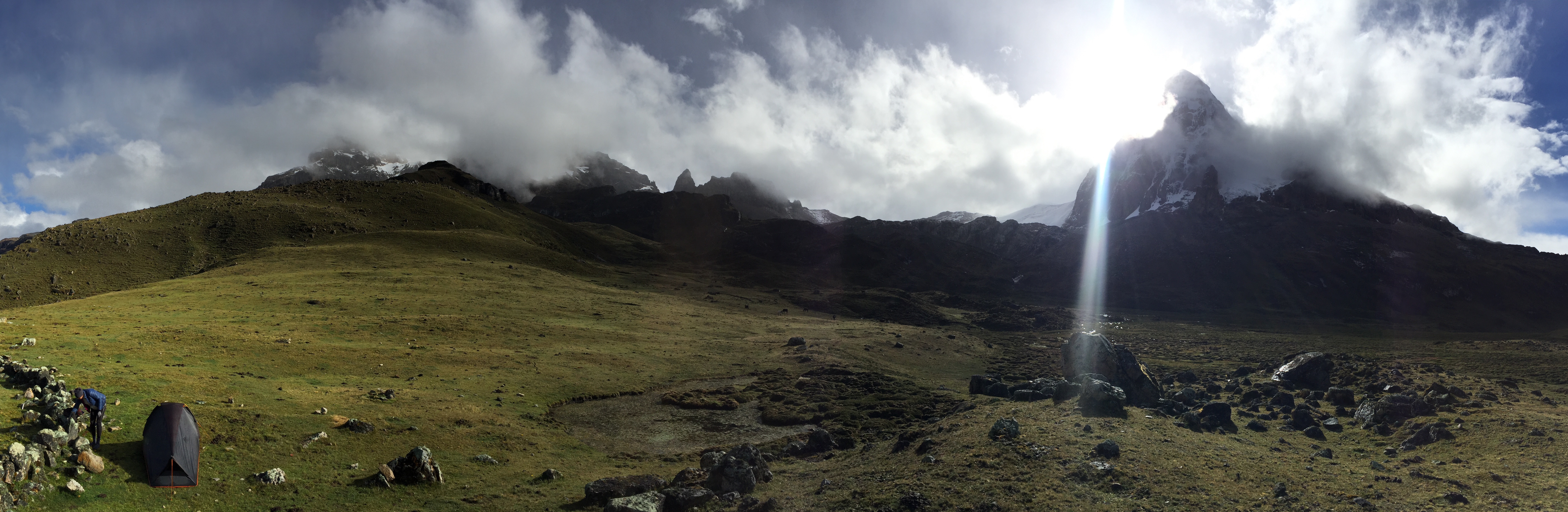 Aussi impressionnante était la vue, nous étions à plus de 4900m, le soleil se couchait à l’horizon et l’endroit était tout sauf idéal pour installer notre campement.