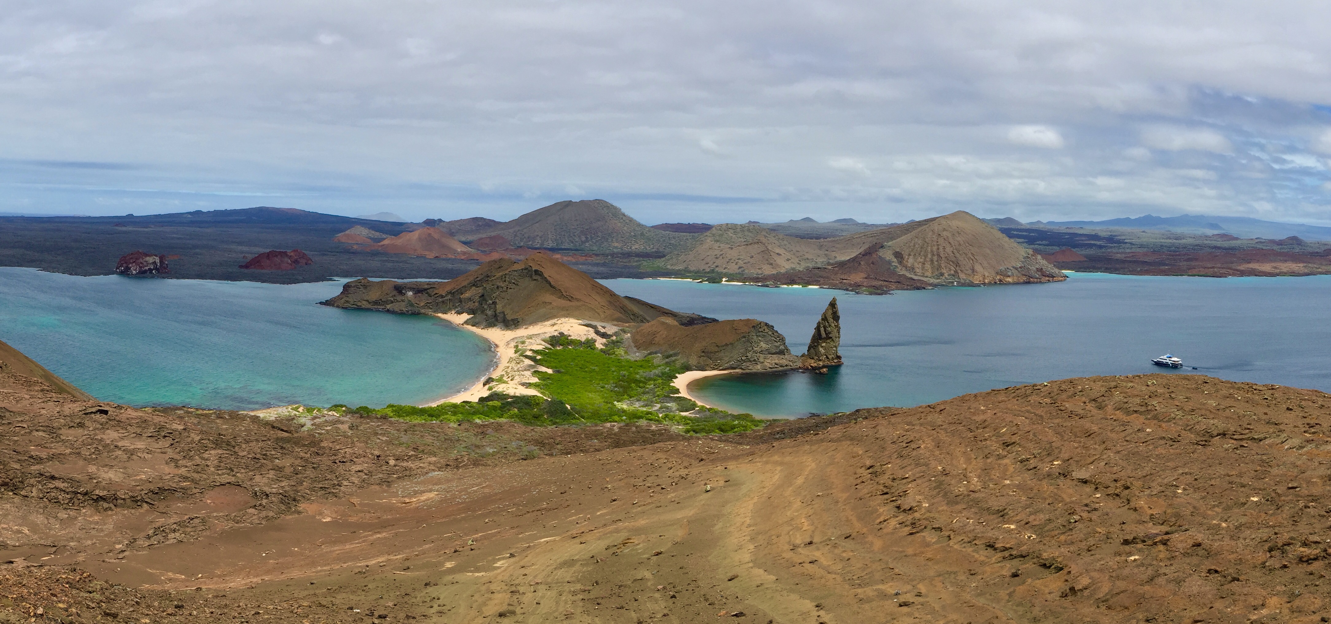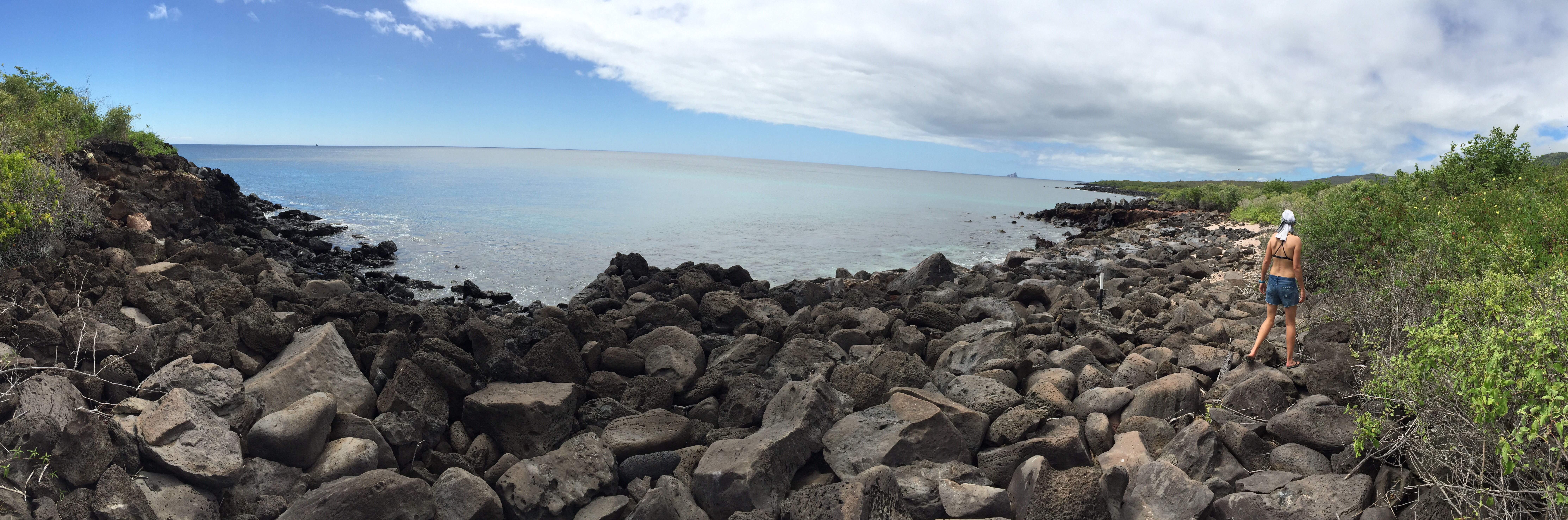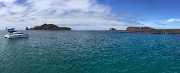 Au final d’une ascension sans difficulté jusqu’à 110m d’altitude, le sommet offre une vue dégagé à 360 degrés sur l’océan et Isla Santiago, une ile formée de plusieurs volcans actifs et composé principalement de champs de lave.
