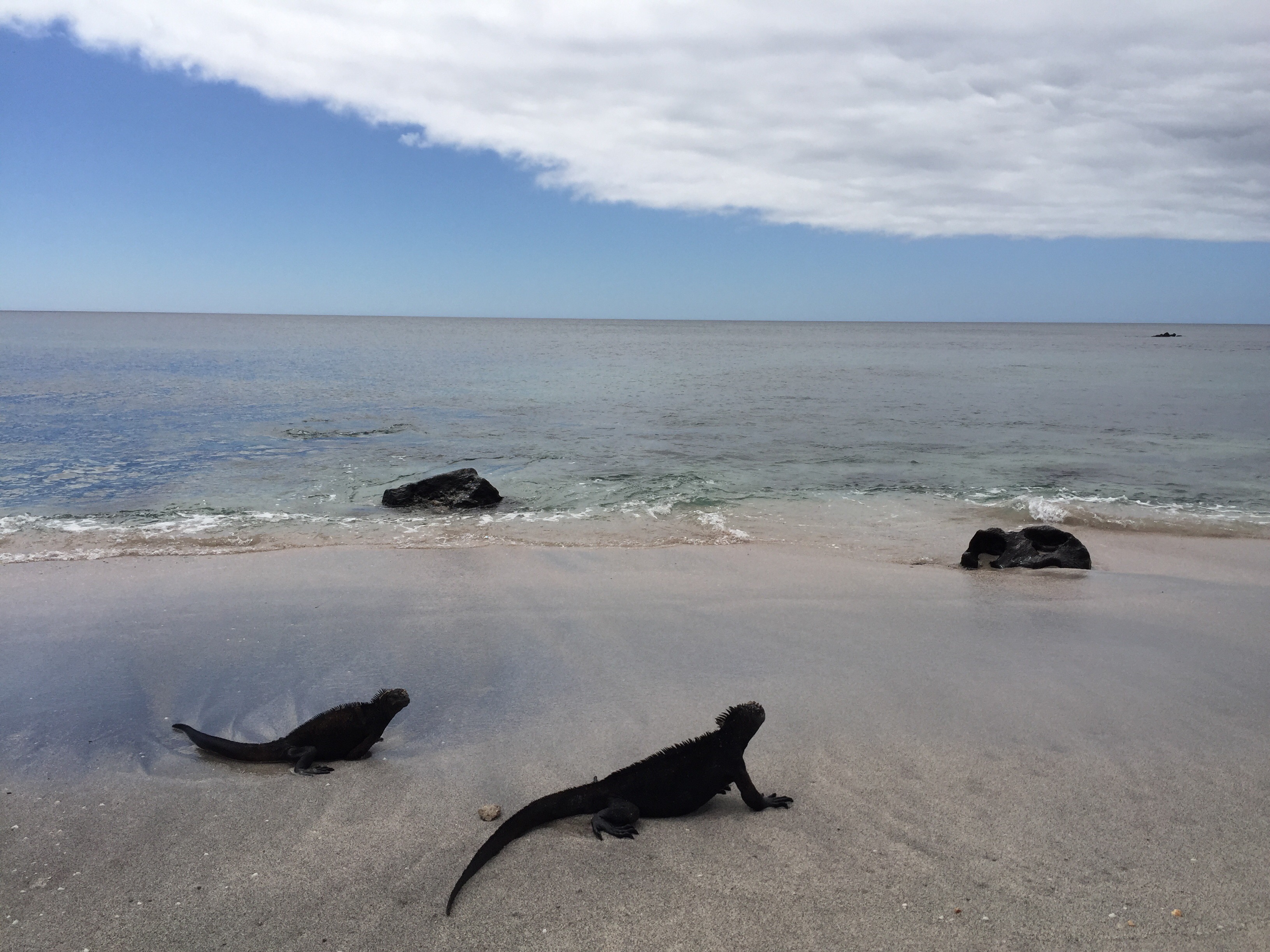 La journée fut sauvée par un dernier arrêt sur les cotes de Isla Santa Cruz sur le chemin du retour. Une tonne d’iguanes, faisant la siesta sur une plage volcanique, et une bonne douzaine de requins nous y attendaient.