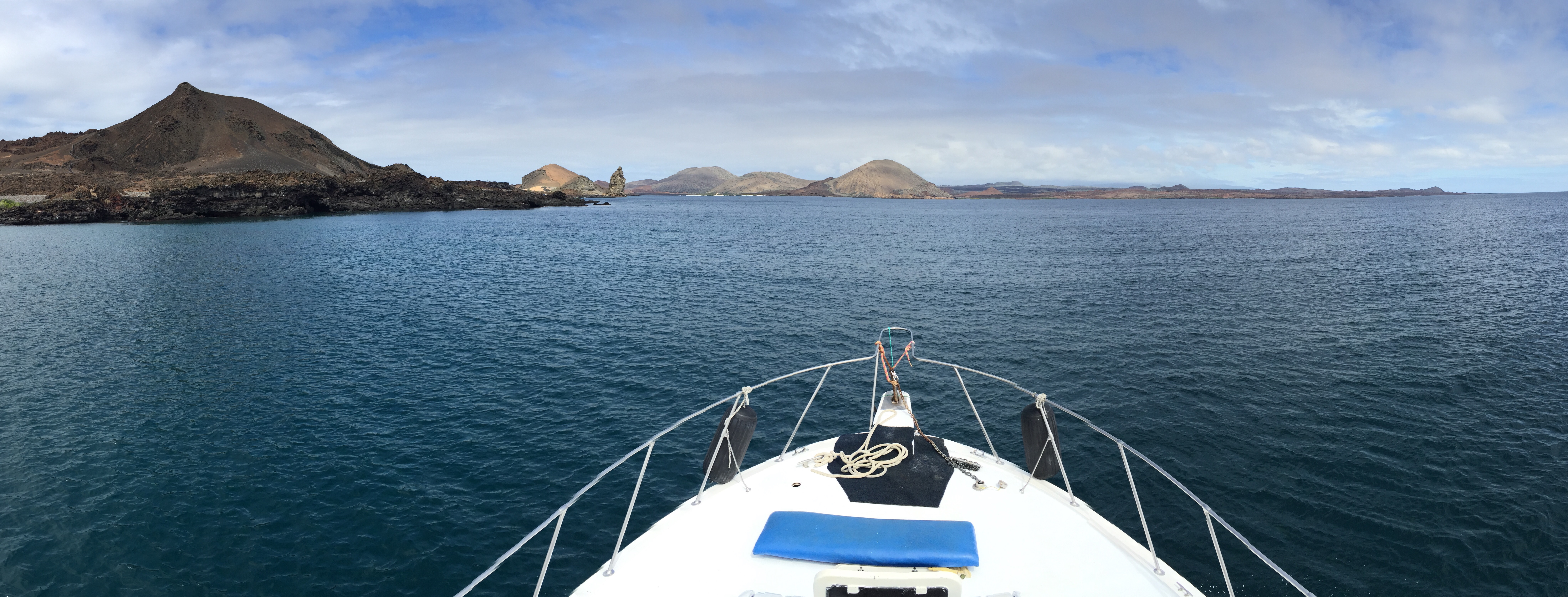 À bord d’un petit bateau, nous voguions en route pour Isla Santa Cruz, une ile en forme de petit cone volcanique dont l’altitude culmine à 860m, le centre géographique et économique de l’archipel.
