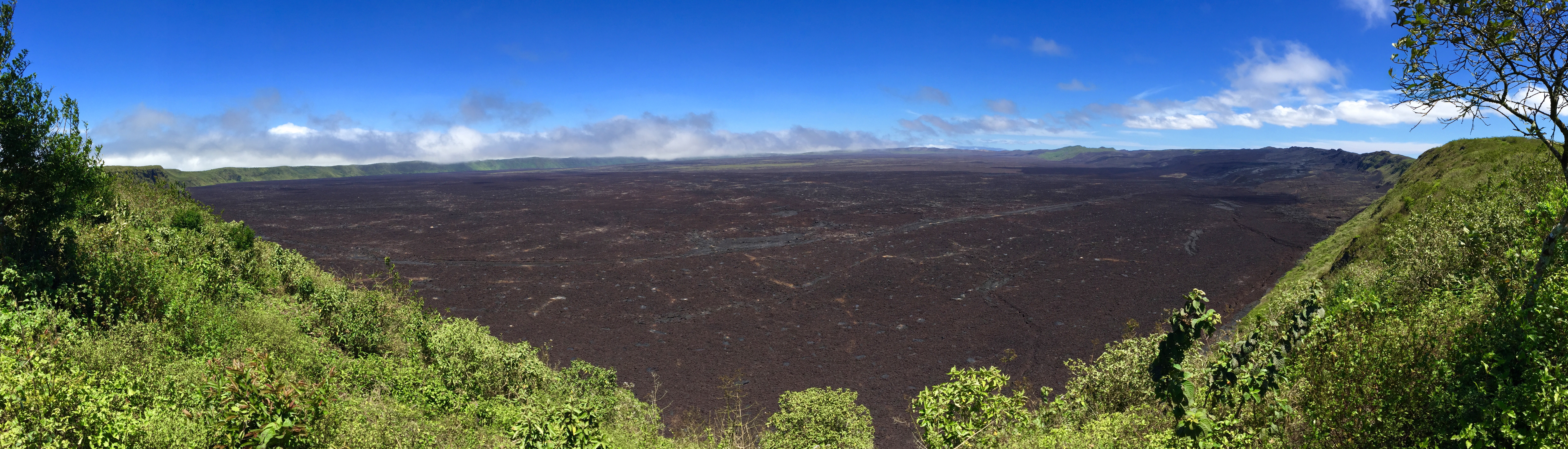 Sur le chemin du retour, le cratère du volcan Sierra Negra était complètement à découvert. Il était alors très facile de comprendre l’origine du nom du volcan Sierra Negra (Champs Noir).