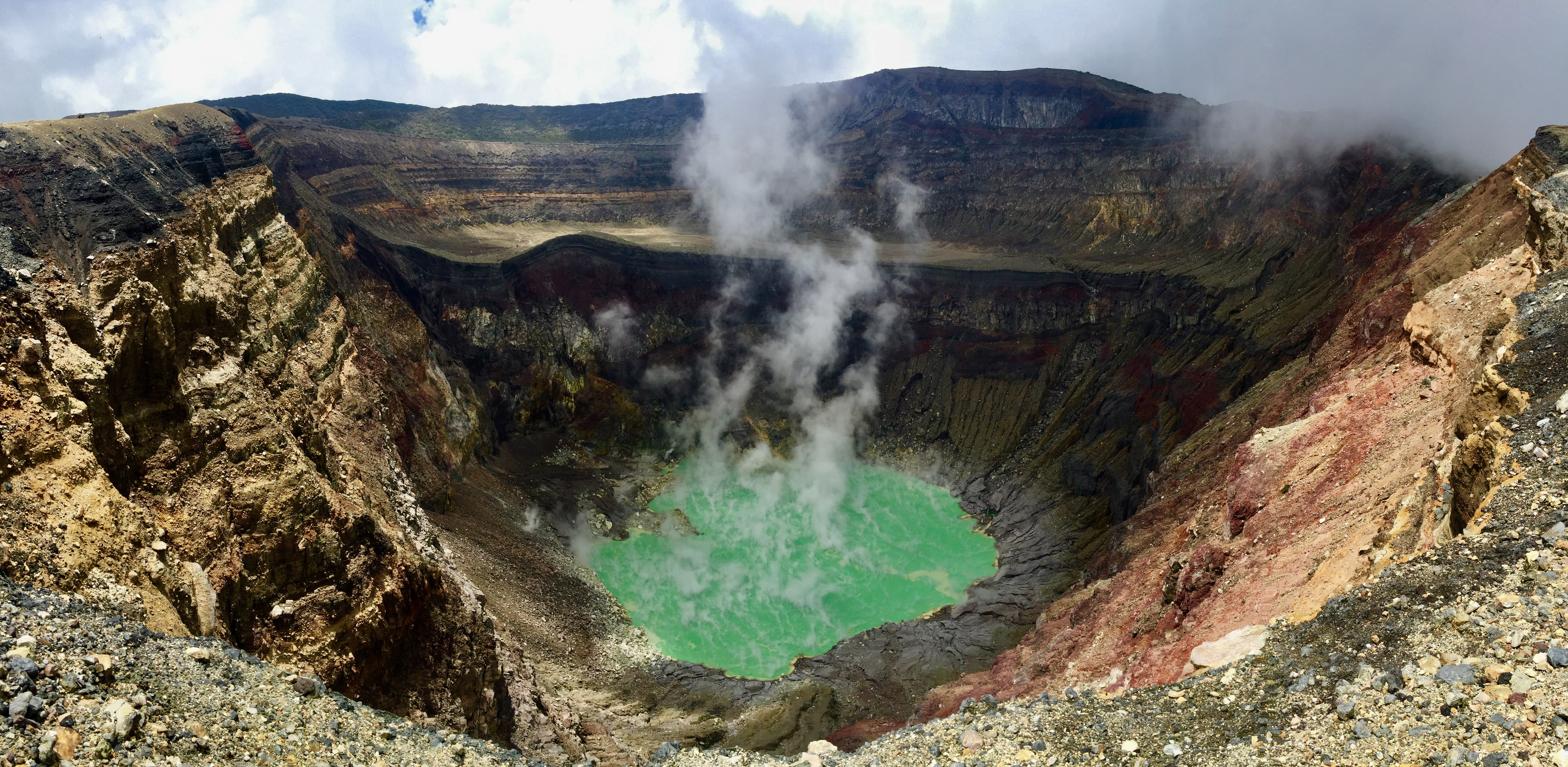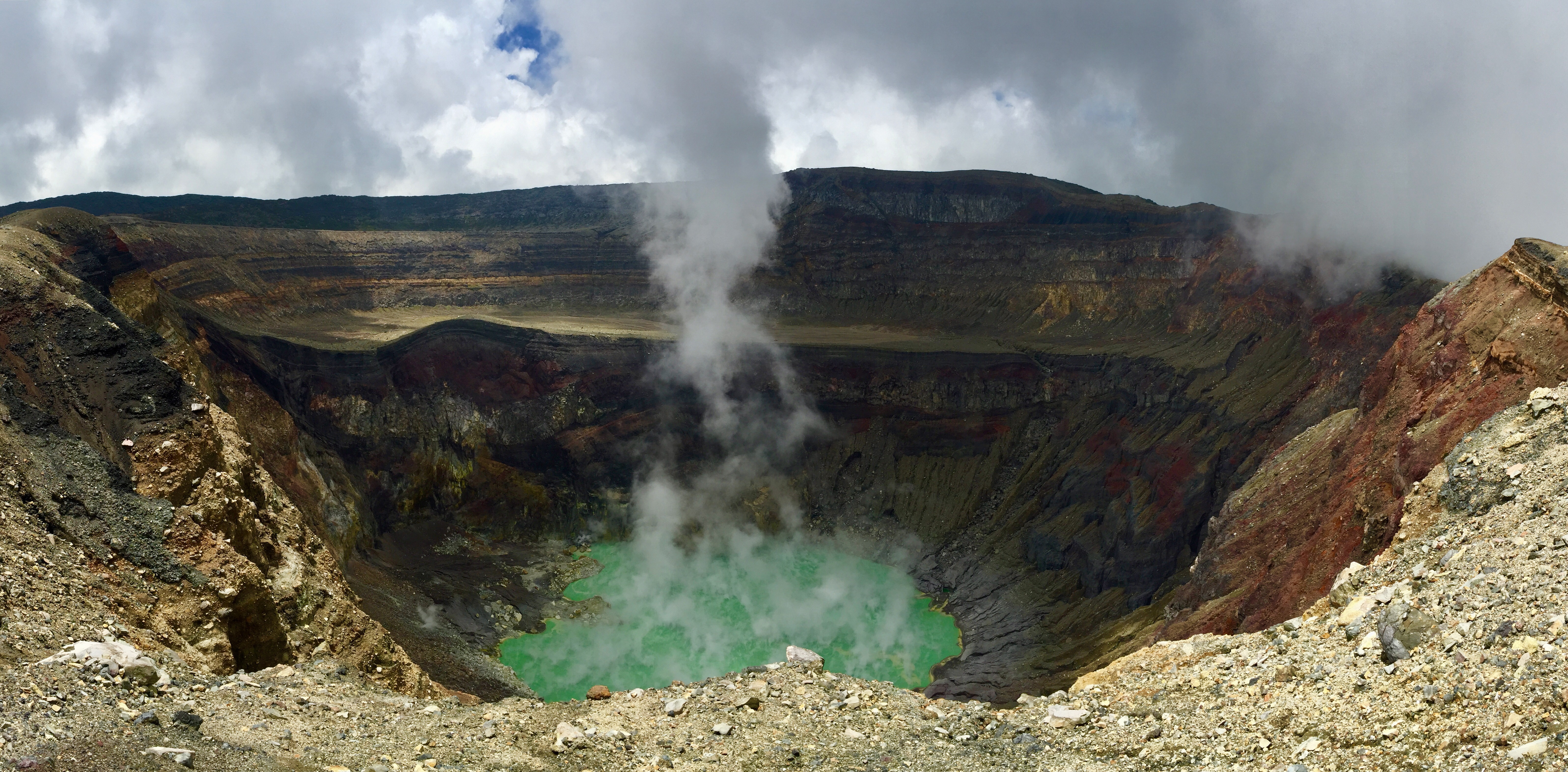 Aussi connu sous le nom de Ilamatepec, c’est le plus haut volcan du pays (2381m). Son cratère, aux multiples couleurs de minéraux, est rempli d’un lac bouillant.