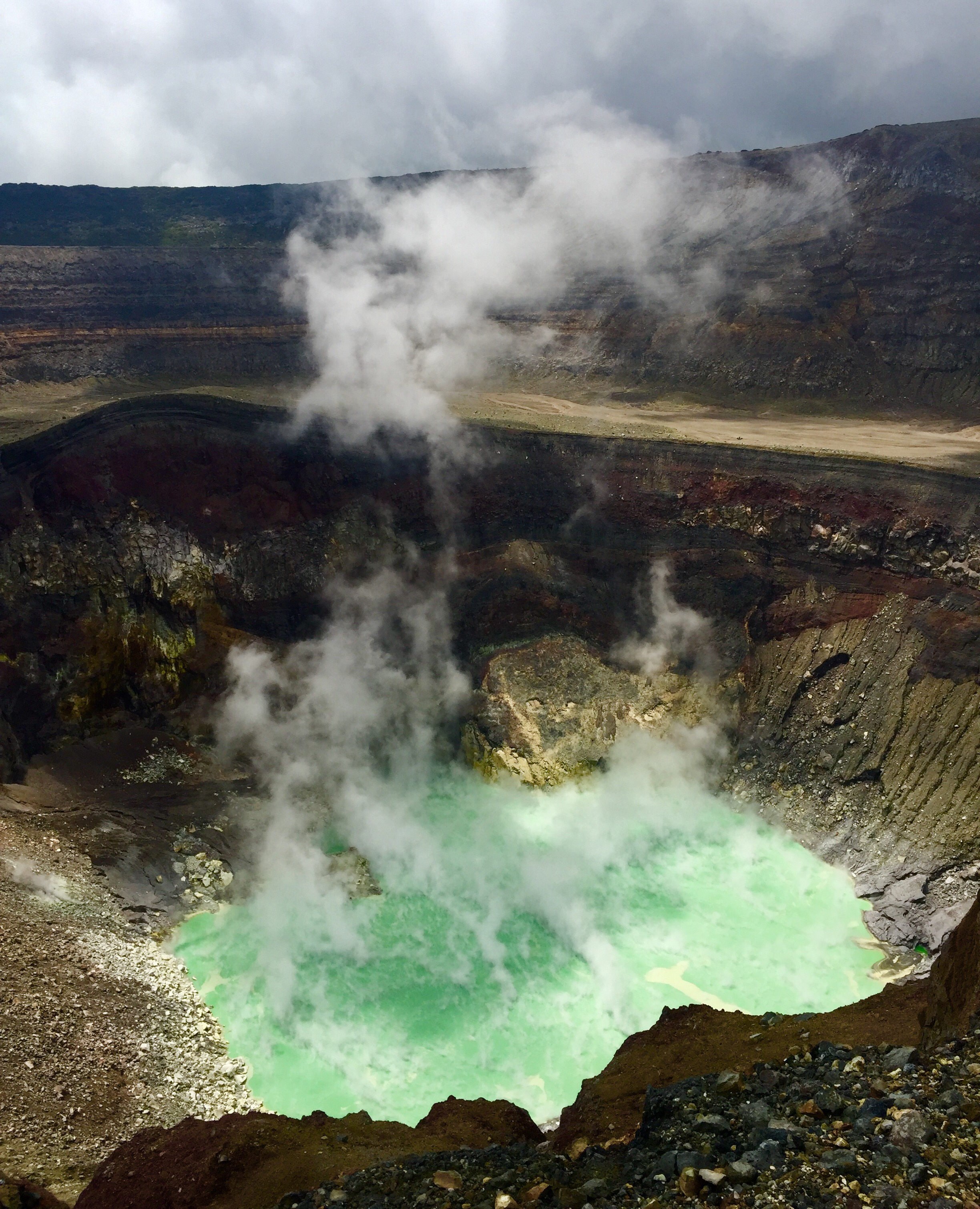 C’est la 1ère fois que je me tapais presque 2000m d’ascension… en bus de ville… parce que oui, quoique très à pic, les flancs du volcans sont habités jusqu’en haut (les terres sont très fertiles).