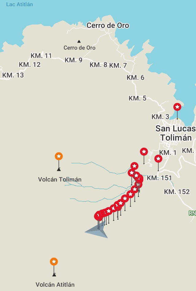 Une légende maya veut que les Volcans Toliman & Atitlan formaient un couple. Un jour, Toliman a trompé Atitlan avec San Pedro. Quand Atitlan apprit la nouvelle, elle, coupa la tête de Toliman! La tête roula tout en bas de la montagne jusqu’en bordure du lac et créa le Cerro Oro (@1892m).