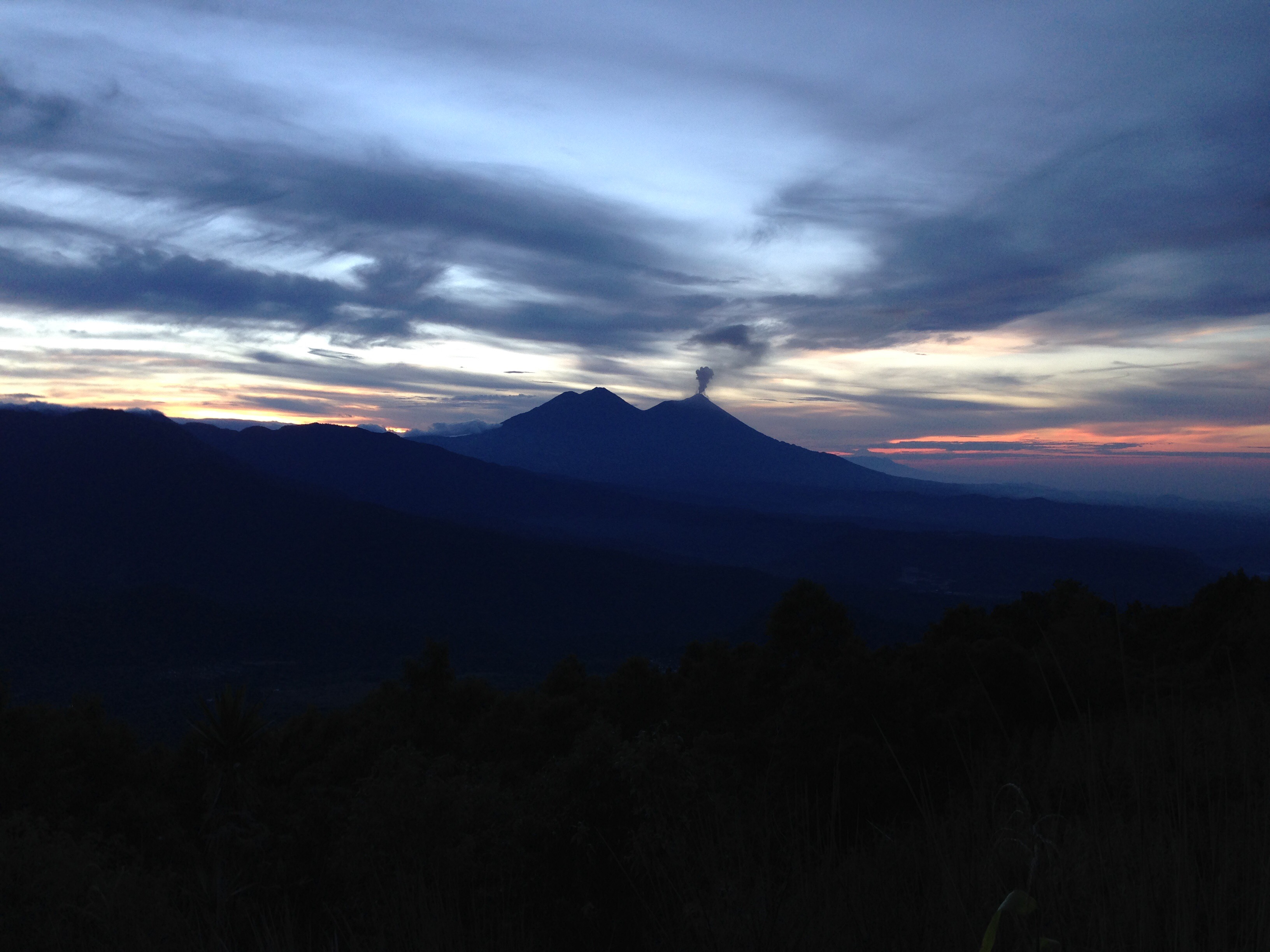 Je me trouvais un mirador avec une vue imprenable sur les Volcans Acatanango & Fuego (les volcans de Antigua… voir Épisode précédent) et le soleil qui allait se pointer à tout moment.
