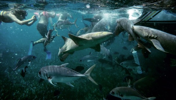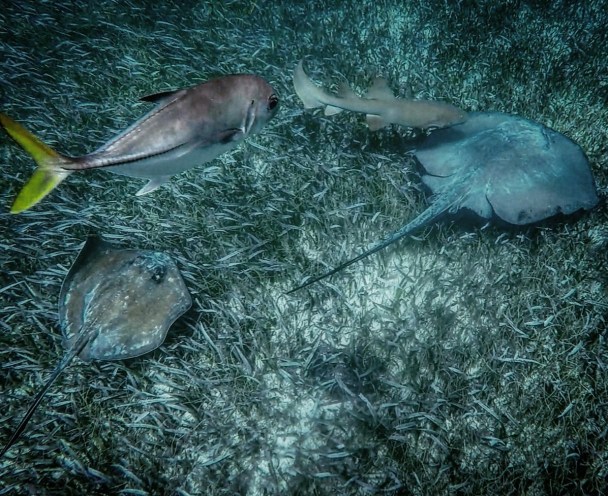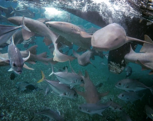 Premier de 3 arrêts; la « Shark Ray Alley (Corridor de Requins et Raies) », un canal où vivent une tonne de raies géantes et des requins-nourrices (Nurse Shark). De couleur brune et avec une face de poisson chat (comme si je savais de quoi je parle), les requins-nourrices ne sont vraiment pas dangereux, mais peuvent mordre si on tente de les toucher.