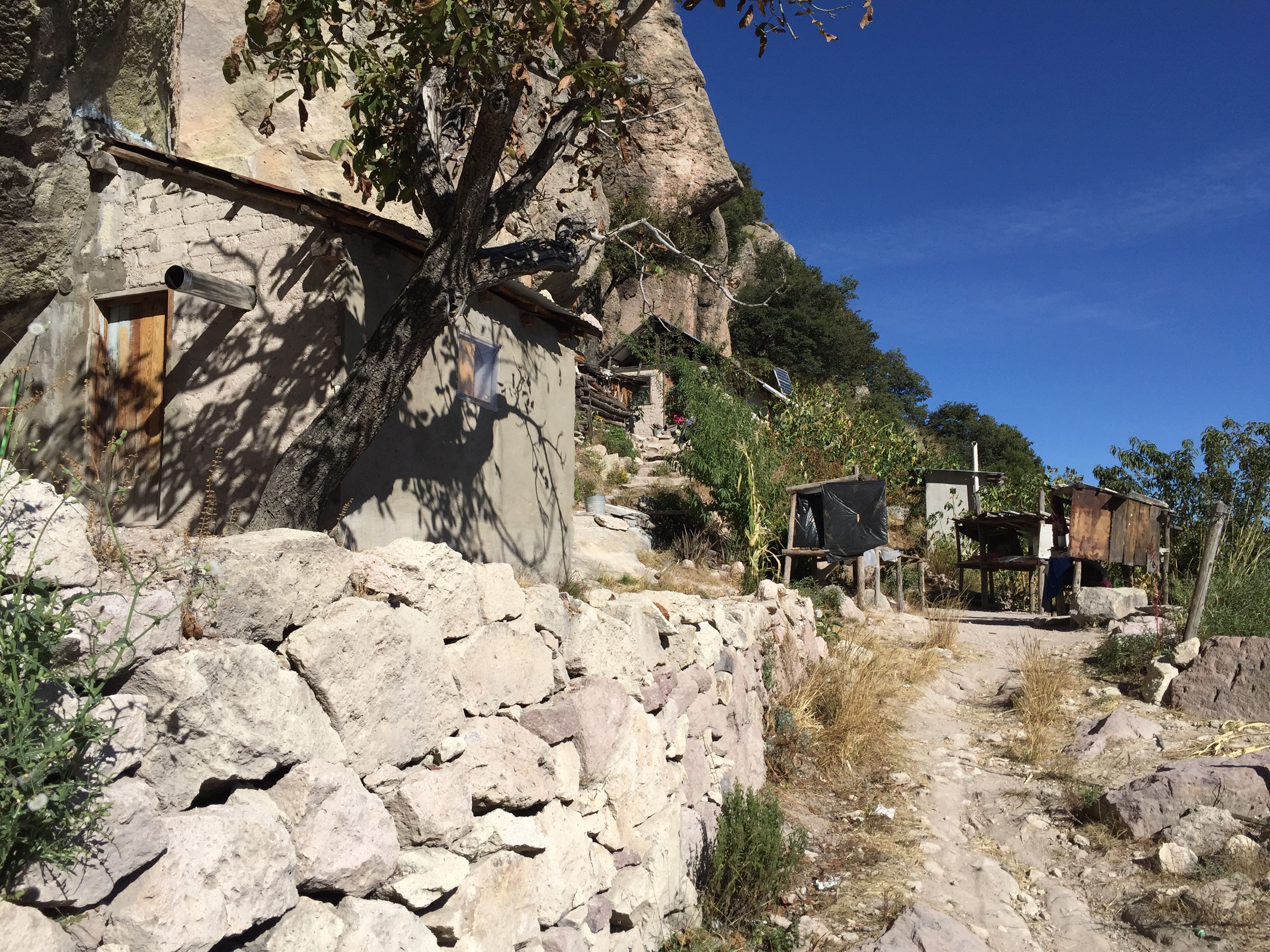Terminus Urique (@550m), ancien village de mineurs à l’écart du chemin de fer, blottis au plus profond du Barranca de Urique, le plus profond des canyons de la région, sur le bord du Rio Urique, une rivière (quasi asséché) aux eaux transparentes. En levant les yeux vert le ciel, j’apercevais plus de 1870m de paroi rocheuse…
