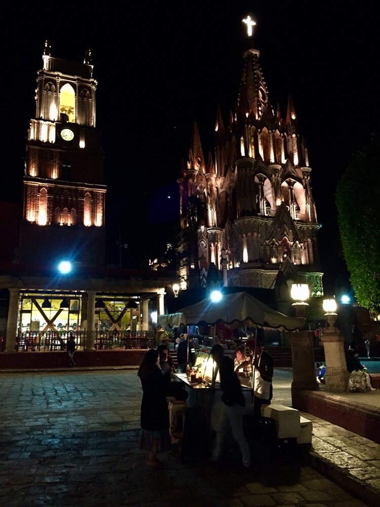 Déjà impressionnant de jour, le Parroquia est éblouissant en revêtant son manteau de lumières une fois la nuit tombée.