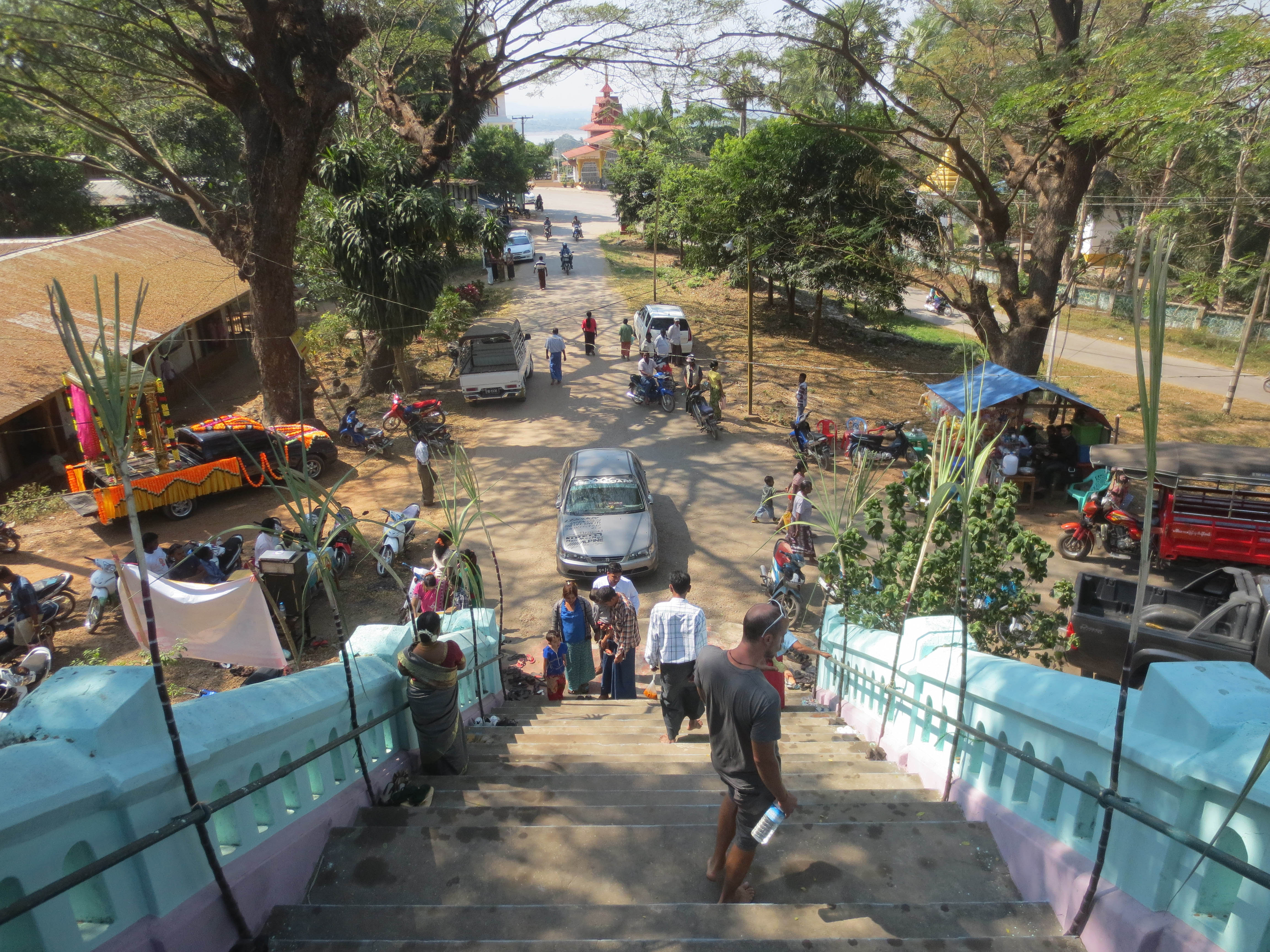 6.45pm – Qu’à cela ne tienne, à peine 3h plus tard que prévu (en Asie on peut dire qu’on était presque à l’heure) nous arrivions finalement à destination… Kyaikto (prononcé Chaito)… ahhh non… on m’indique qu’il me restait encore 30min de route à faire pour véritablement attendre mon objectif; Kinpun…