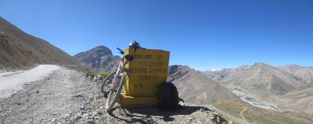 Cette phrase parlait de la route Manali/Leh, principal accès terrestre reliant le Nord-Ouest de l’Inde au reste du pays. Cette phrase mentionnait que le bus, le jeep ou la moto étaient les moyens les plus courant de parcourir le chemin, MAIS que depuis quelques années, quelques individus en mal de sensations extrêmes faisaient la route à vélo…