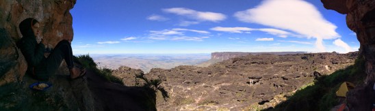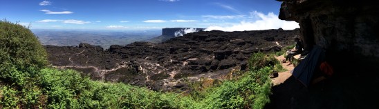Le camp d’aujourd’hui se trouvait sur un plateau, au sommet du monticule de verdure, tout près du début de la paroi rocheuse. L’endroit offrait une vue imprenable sur la Gran Sabana en contrebas.