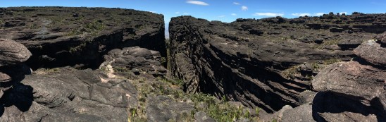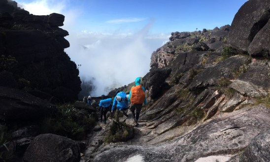 Le guide avait beau pointer en direction du sentier montant jusqu’au sommet, je ne voyais que des parois verticales. Il y avait pourtant bel et bien une brèche dans l’armure de Roraima… une seule sur tout le périmètre; « Paso de la Grimace ».