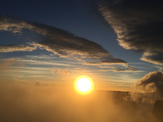 Voir un coucher de soleil assis à moins de 1m du bord d’une paroi verticale plongeant à plus de 800m; check.