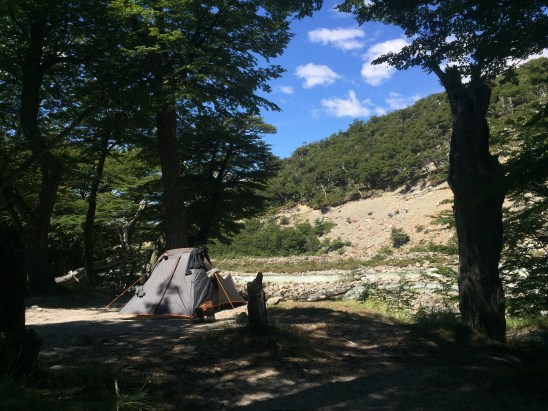 Au moment où je songais sérieusement à retourner à El Chalten, je croisais un camping sur le bord d’une rivière toute bleue (il n’y a pas de hasard dans la vie) et décidais de m’y arrêter pour la nuit.