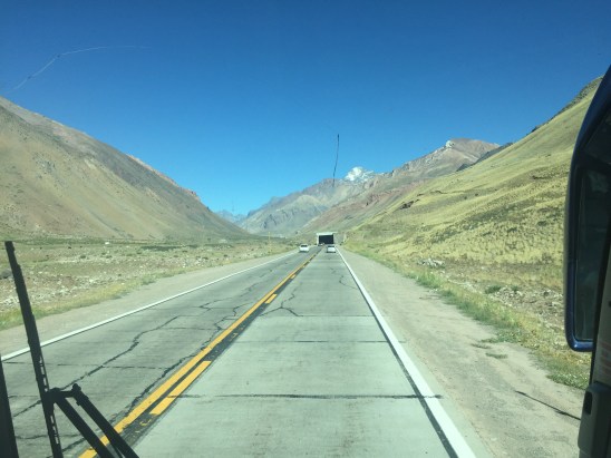 La route se frayait une chemin au travers des montagnes en zigzaguant dans de profondes vallées. À cet endroit, les Andes sont relativement arides, exception faite des hauts sommets 5000m+) enneigés.