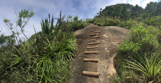 Direction la Praia da Galheta, surnommée (par moi) « Penis Beach »; LA plage nudiste sur l’ile (on ne le savait pas)… qu’on peu atteindre via un super sentier côtier de 3km, traversant la forêt tropicale et quelques petits sommets.