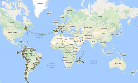 324 jours où j’ai exploré 11 pays (Colombie, Équateur, Pérou, Bolivie, Chili, Argentine, Uruguay, Brésil, Suriname, Guyana, Vénézuela) et un territoire français outre mer (Guyane Française). Seule ombre au table; je n’ai pas visité le Paraguay. J’aurais bien voulu, mais le visa de 150$us requis pour les canadiens m’a fait changer d’idée.