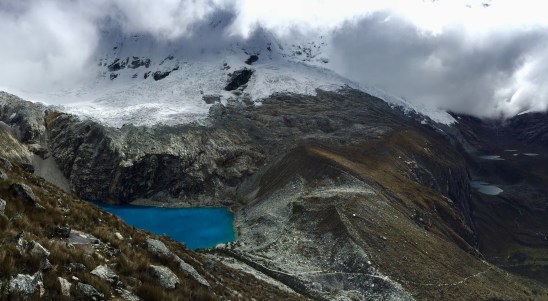 Situé à 4450m, au pied du Nevado Churup (5495m), il faut tout d’abord prendre un bus depuis Huaraz, se faire brasser sur une route durant 18km jusqu’au village de Pisac, et faire une courte (mais intense) ascension (3km +650m allé).