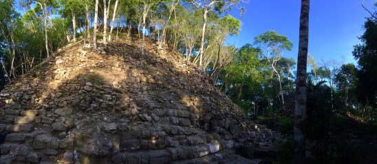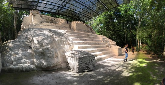 À l’heure actuelle, seule la partie supérieure est dégagée. Le reste est toujours recouvert par la jungle et ne ressemble à rien d’autre qu’une colline recouverte d’arbre. Les archéologues travaillent à lui redonner sa grandeur d’antan, mais ils leur faudra encore plusieurs décennies.
