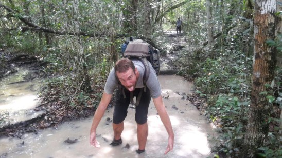 « Je croyais que je pourrais me rendre à El Mirador les pieds secs… » – Sages paroles que Leroy (autre volontaire à QuetzalTrekkers) me lançait… en ayant les 2 pieds dans une rivière de boue…